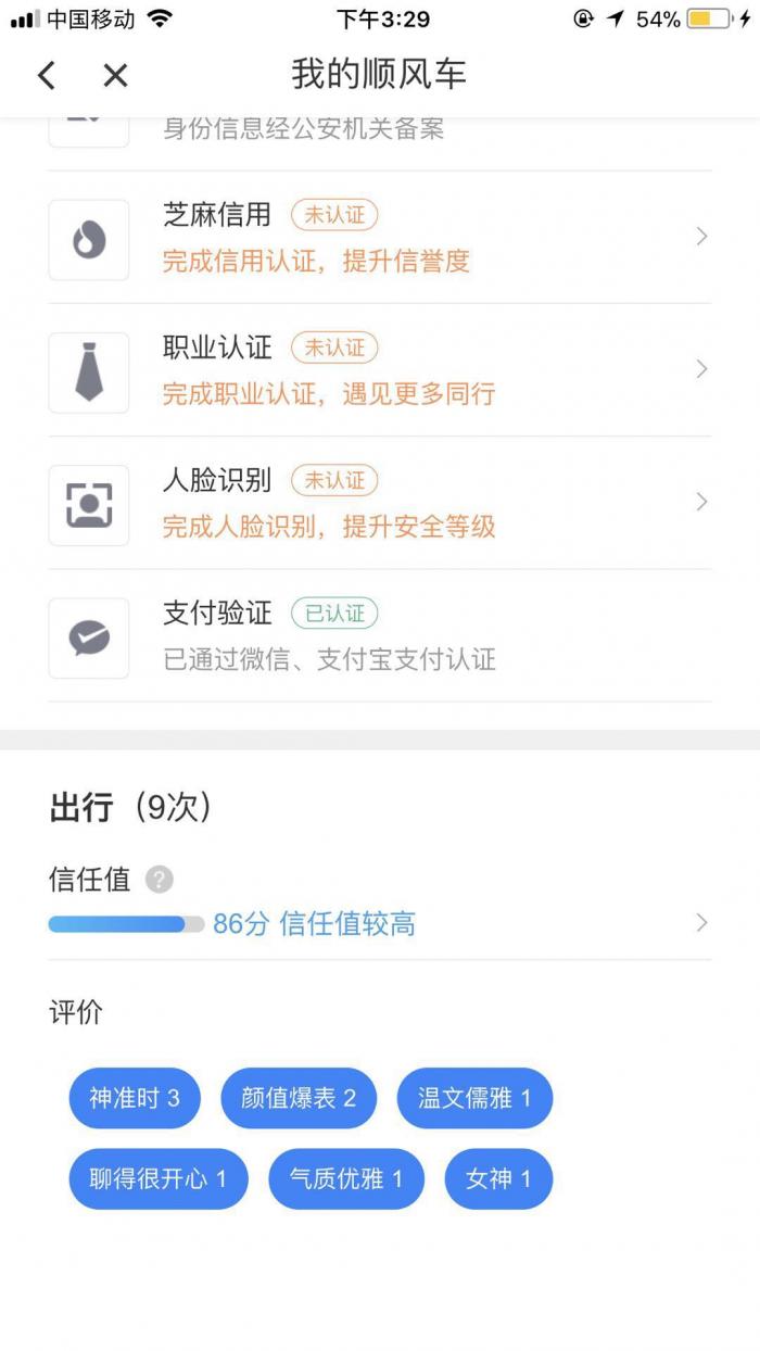 以下为一位乘客向本报记者提供的顺风车司机评价截图: