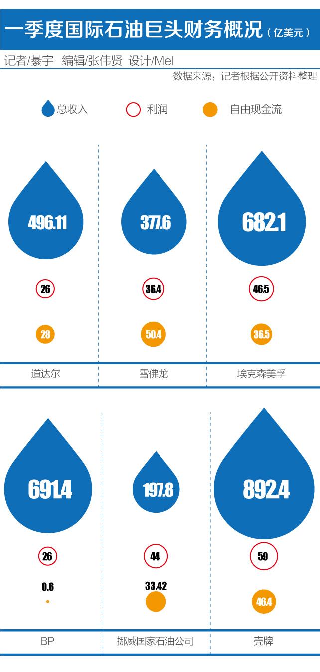 好在,道达尔一季度交出了一份不错的答卷。营收496.11亿美元同比增长20.46%;自由现金流28亿美元;受制于炼油业务的利润下降,一季度利润同比降7%至26亿美元。