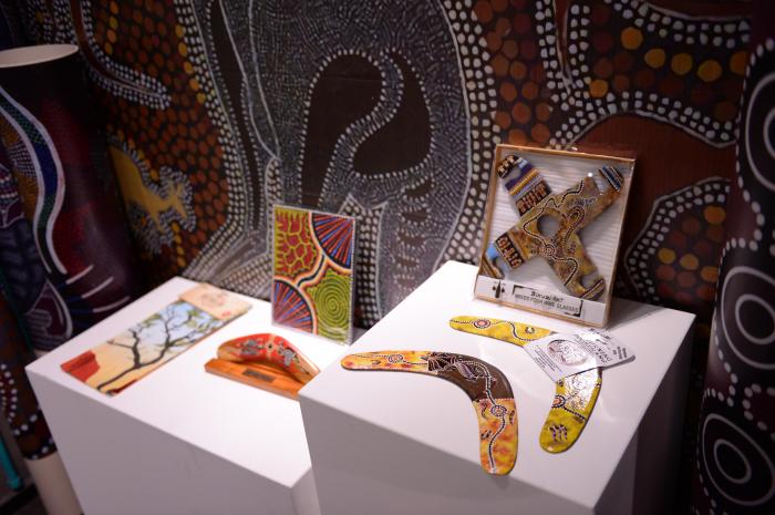 在中国非遗和澳洲土著艺术联合展览上,有世界上最古老的艺术之一、自遥远的南半球——澳洲土著艺术展品,图腾、洞穴绘画、人体绘画……这些独特的展品展示着澳洲独特的文化和传统。澳洲土著艺术作为世界上最古老的艺术之一,土著文明以其独特的文化和传统记录着澳大利亚的历史,是澳洲文化的重要代表元素。澳大利亚的文化最早可追溯到两万年前,是土著人以石刻、树刻、飞镖、图腾、洞穴绘画、人体绘画和土著语言、像形文字等方法记录下来,形成了独特的土著艺术,创造了灿烂的澳大利亚文化。