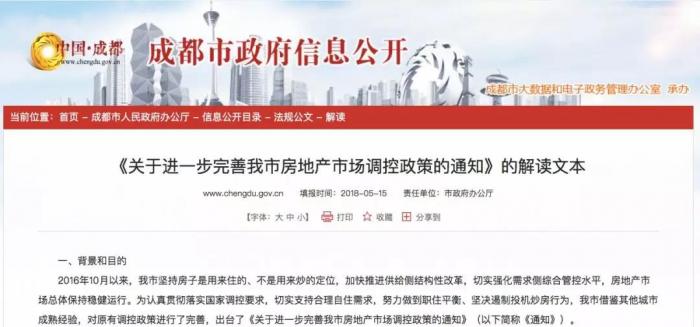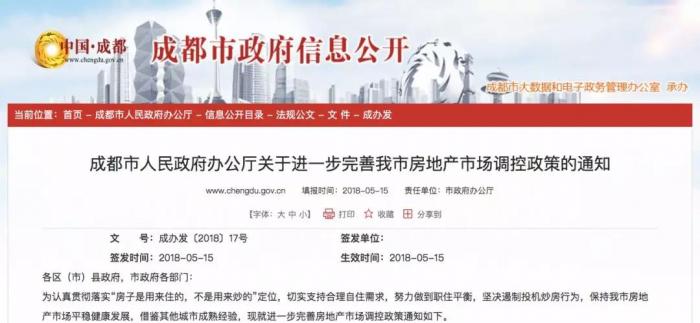 就在今天(5月15日)晚间,成都市政府办公厅发布了《成都市人民政府办公厅关于进一步完善我市房地产市场调控政策的通知》(以下简称《通知》),进一步完善房地产市场调控政策。