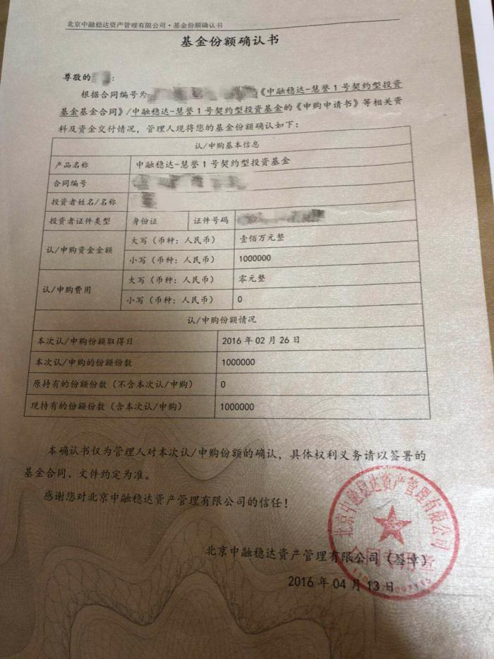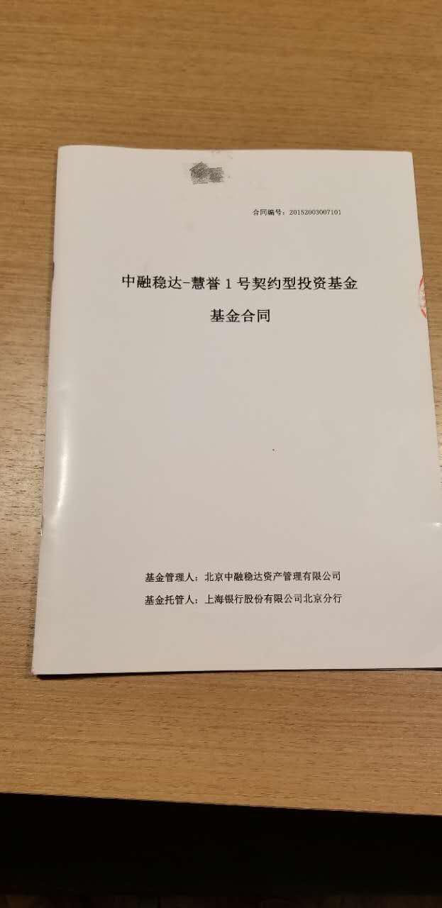 对此,中融稳达回复称,中融稳达-慧誉1号私募契约型基金成立于2016年2月,于2017年8月存续期限到期并进入清算期。《基金合同》和《风险揭示书》中明确写明“本基金为私募契约型证券投资基金,不设预期收益。投资者根据所持有的基金份额享受基金收益,同时承担相应的投资风险”。
