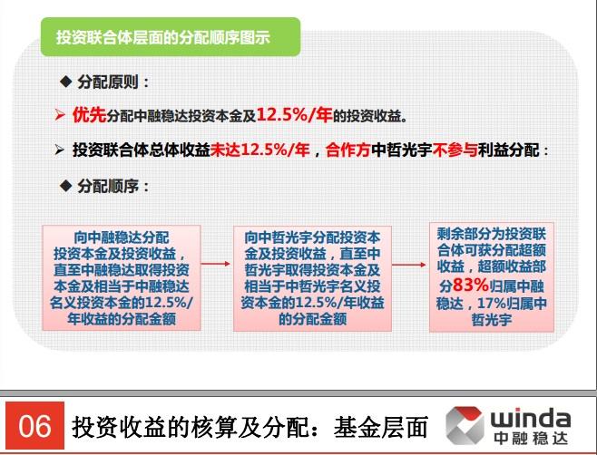 据投资者反映,基金推介资料中,有“中融稳达投资净收益下限”和“年化投资收益”的相关表述,如下两图所示: