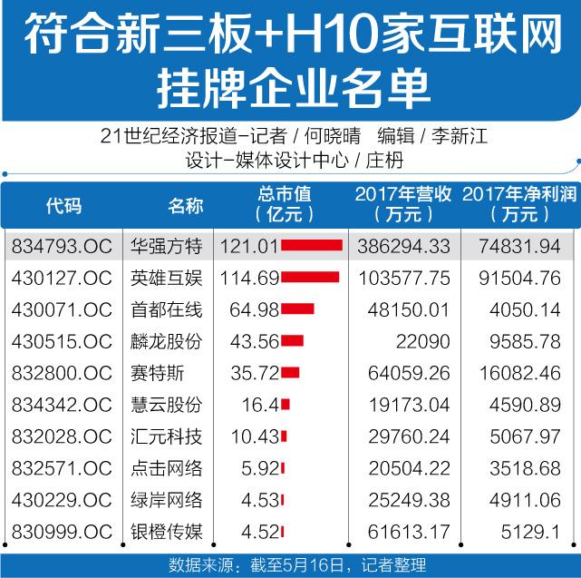 具体而言,互联网行业10 家企业分别包括英雄互娱(430127.OC)、银橙传媒(830999.OC)、首都在线(430071.OC)、赛特斯(832800.OC)、绿岸网络(430229.OC)、麟龙股份(430515.OC)、慧云股份(834342.OC)、汇元科技(832028.OC)、华强方特(834793.OC)、点击网络(832571.OC)。