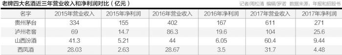最新披露的招股书显示,西凤酒2015年、2016年及2017年的营业收入分别为28.03亿元、28.67亿元和 31.7亿元,净利润分别为2.63亿元、3.5亿元、4.48亿元。