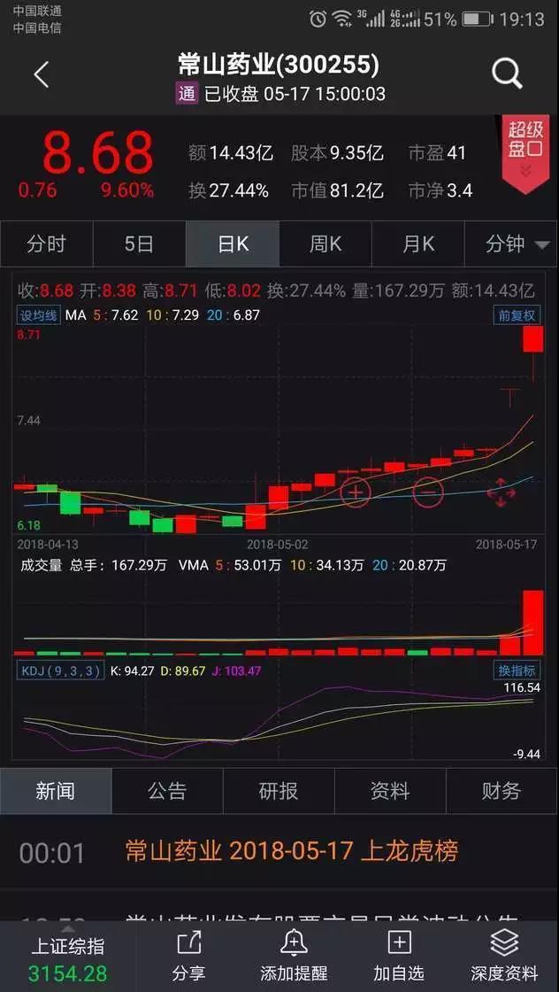 同时,常山药业17日晚间发布公告称:公司股票连续两个交易日(2018年5月16日、17日)收盘价格涨幅偏离值累计超过20%,根据深圳证券交易所的相关规定,属于股票交易异常波动的情况。