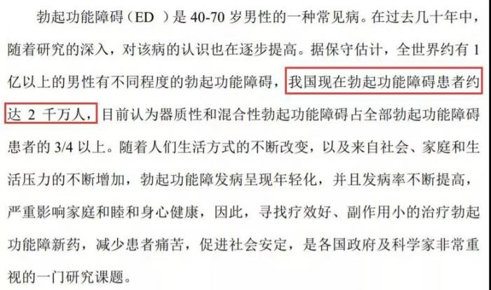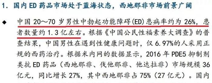 2015年,平安证券的一份研报则称,中国ED患者数量为8000多万人。