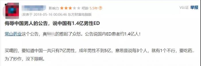 根据国家统计局公开的数据显示,2016年度,我国男性人口总数约7.08亿。倘若以此为基数,按照常山药业的说法,几乎每5名男性中就有1人患有ED——这还是在未剔除未成年男性的情况下。