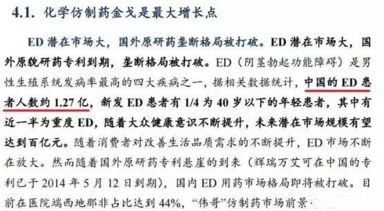 2017年2月,东吴证券一份关于白云山的研报称,我国ED患者人数约1.27亿。