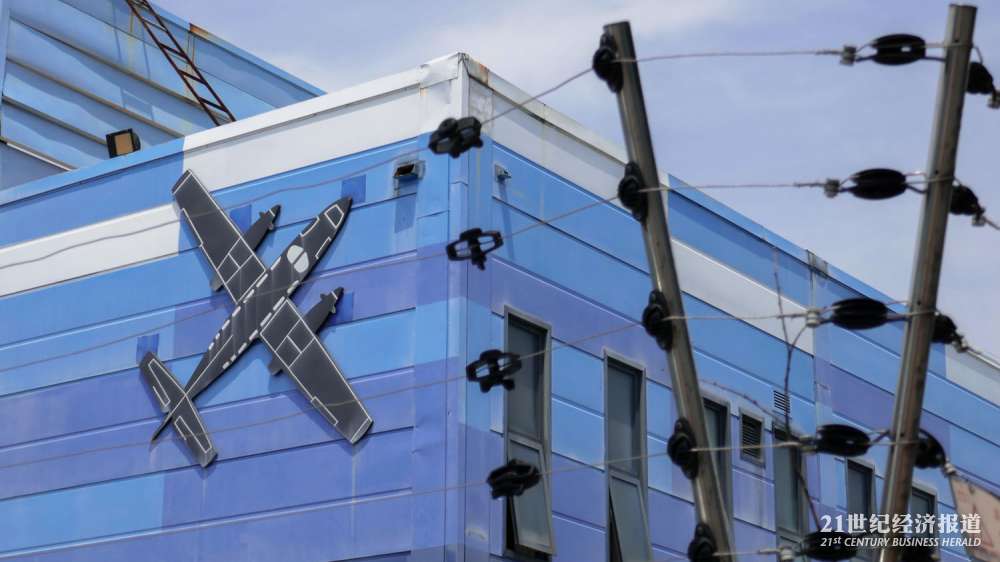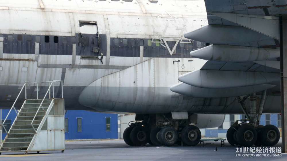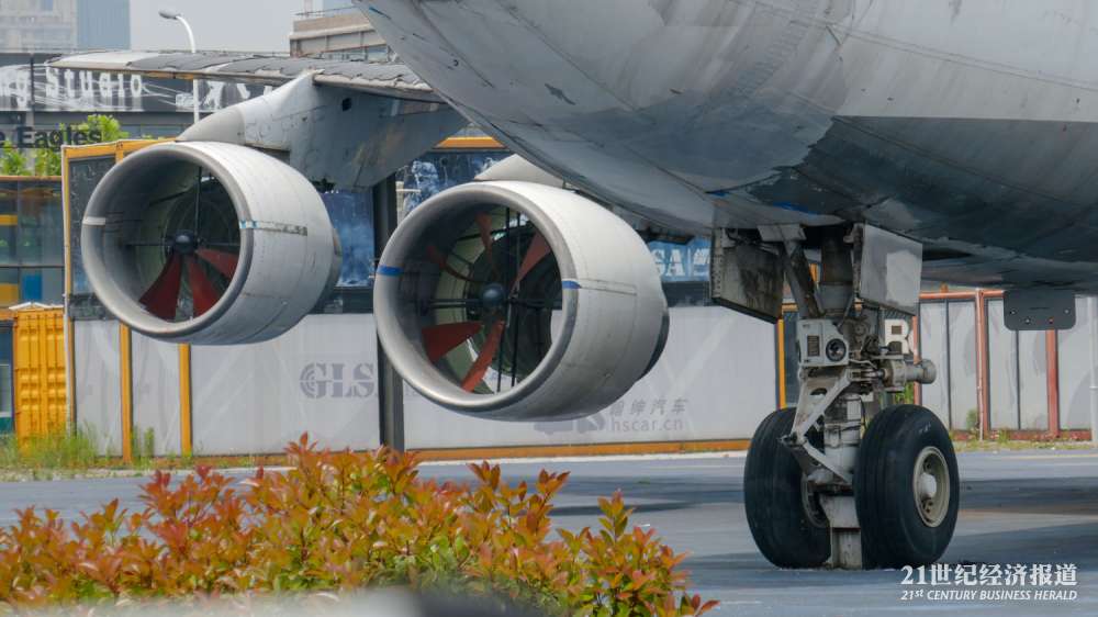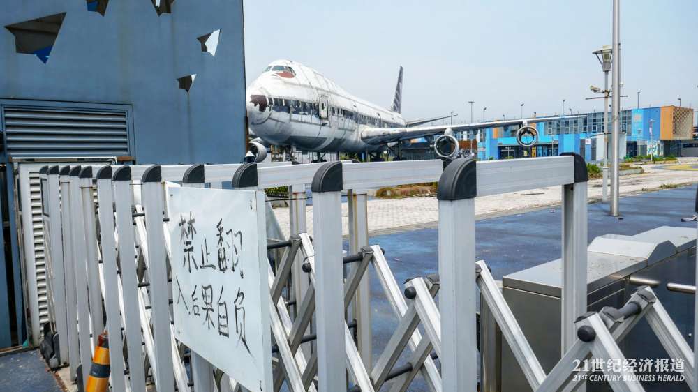 停放在园区内的波音747客机,机身高度约六层楼之高。