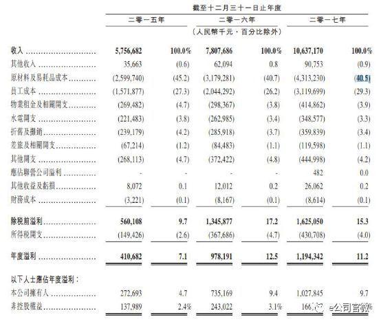目前海底捞在中国内地有296家餐厅,台湾、香港、新加坡等拥有24家,自2015年以来公司收益符合增长率达到35.9%, 2017年收益达到106. 37亿元;近三年利润符合年增长率更是高达70.5%,去年利润实现11.94亿元。