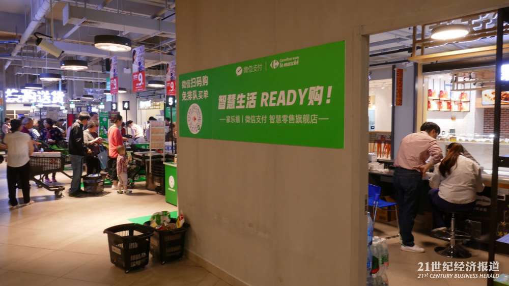 (乌瓦\上海报道)近日(5月20日),腾讯携手法国家乐福,在上海长宁区开了家乐福全球首家智慧超市“le Marche”。 据悉,超市面积为4000多平方米,分上下两层,拥有超过2.5万个商品种类。“le Marche”为法语“集市”的意思,该店意在通过开辟场景多元化,研发应用新科技,融合法式新元素,全面开拓家乐福“智慧零售”新面貌,让消费者能够亲身体验“法式集市生活”。