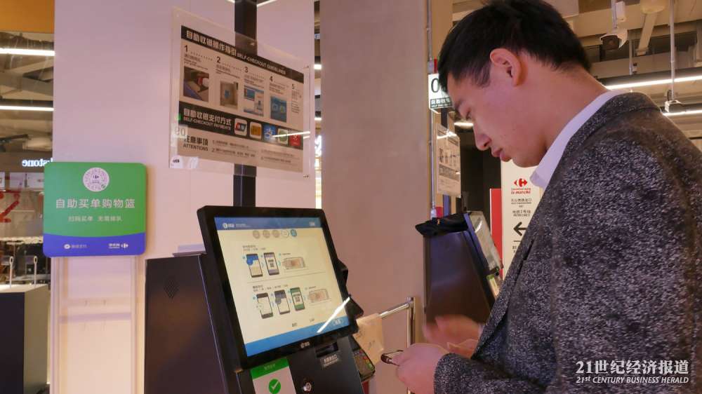 上海,le marche超市自租结帐区。结账除了可以微信支付还有其他方式。