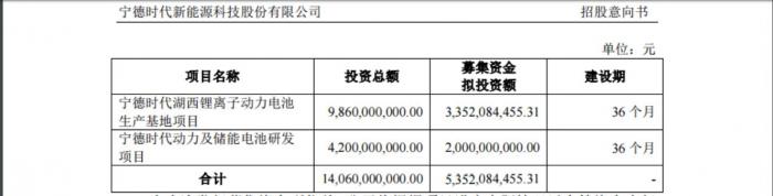 同时,宁德时代还披露了此次预期募资的金额,约为53.52亿元,将投向代湖西锂离子动力电池