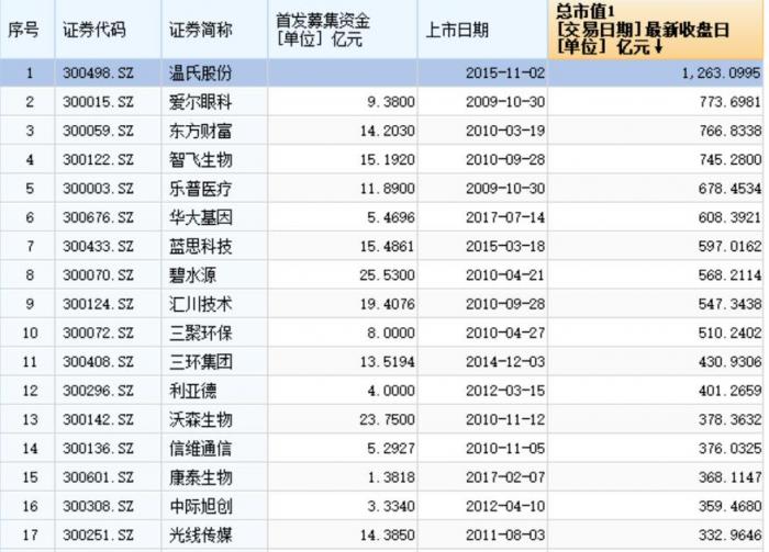 对于宁德时代上市后的市值变化,外界猜测其市值有望突破千亿元,超过目前创业板的“市值王”温氏股份(300498.SZ),成为创业板市值最高的上市公司。