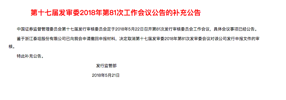 5月18日, 证监会发布的第十七届发审委2018年第81次工作会议公告中,泰坦股份的名字赫然在列。