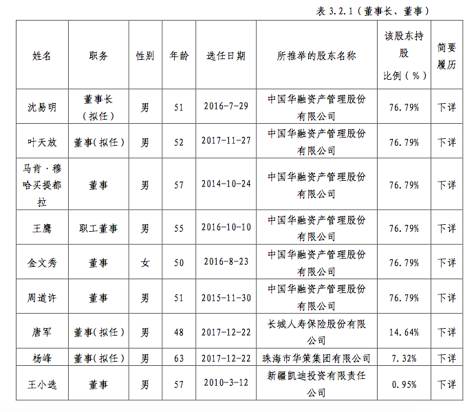 此外,由于2017年华融信托成功引入投资人,本次董事会相应新添两个席位。同时需要说明,原董事长周道许仍任职董事。