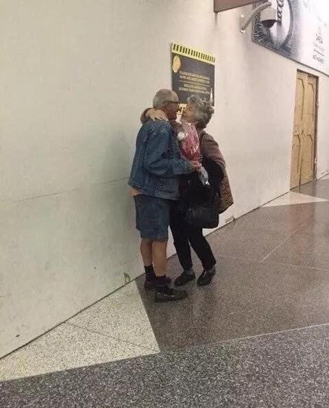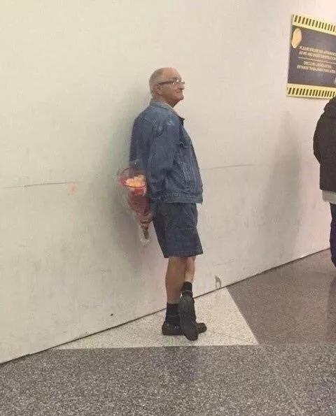 就像这位60多岁的爷爷,结婚多年还会手捧玫瑰花,像少年时一样等待心爱之人出现。