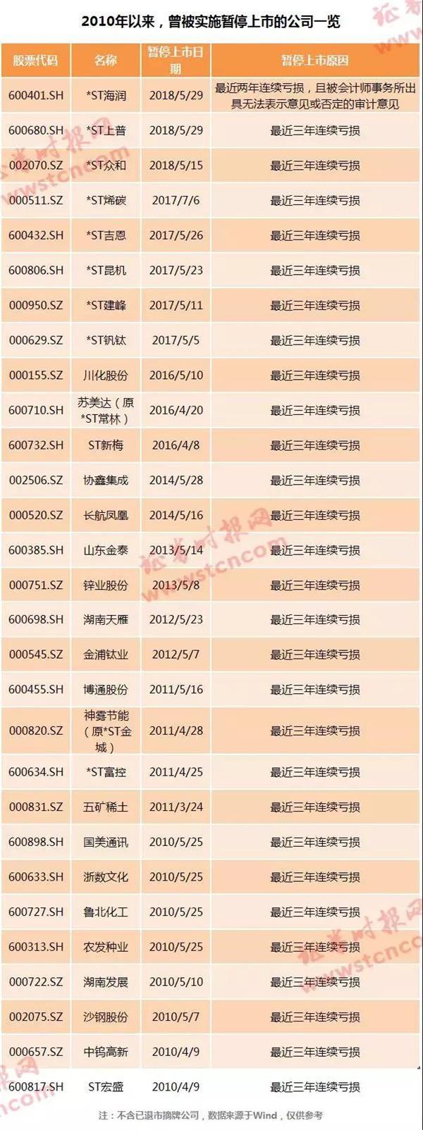 初略统计,今年以来,有40多家公司曾发布暂停上市风险的提示公告,其中*ST众和、*ST上普、*ST海润已确定暂停上市。其余公司是否暂停上市,仍存在较大不确定性。