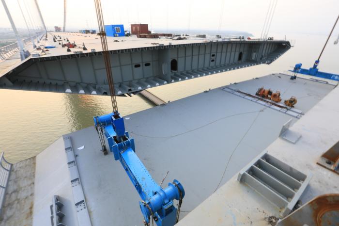最后一片钢箱梁的吊装最为关键,直接决定了合龙的质量。