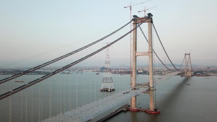 实际上今年稍早,主跨1200米的虎门二桥大沙水道桥主桥已率先合龙。而坭洲水道桥的顺利合龙,标志虎门二桥两座超千米级主桥均已顺利贯通。