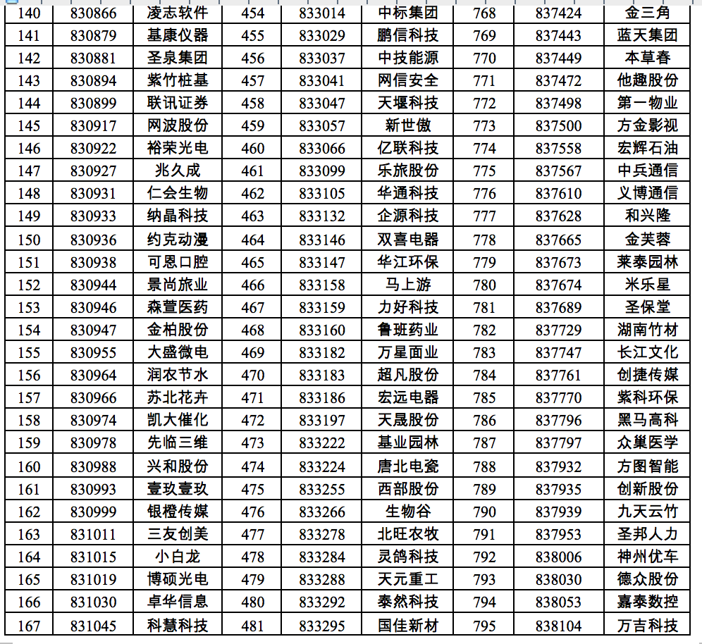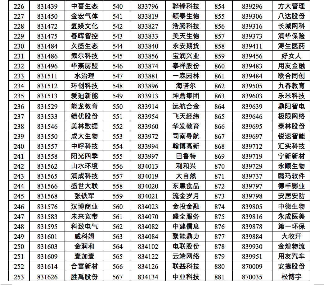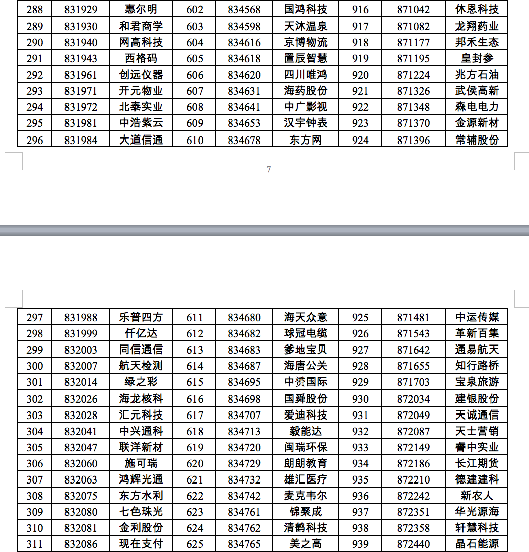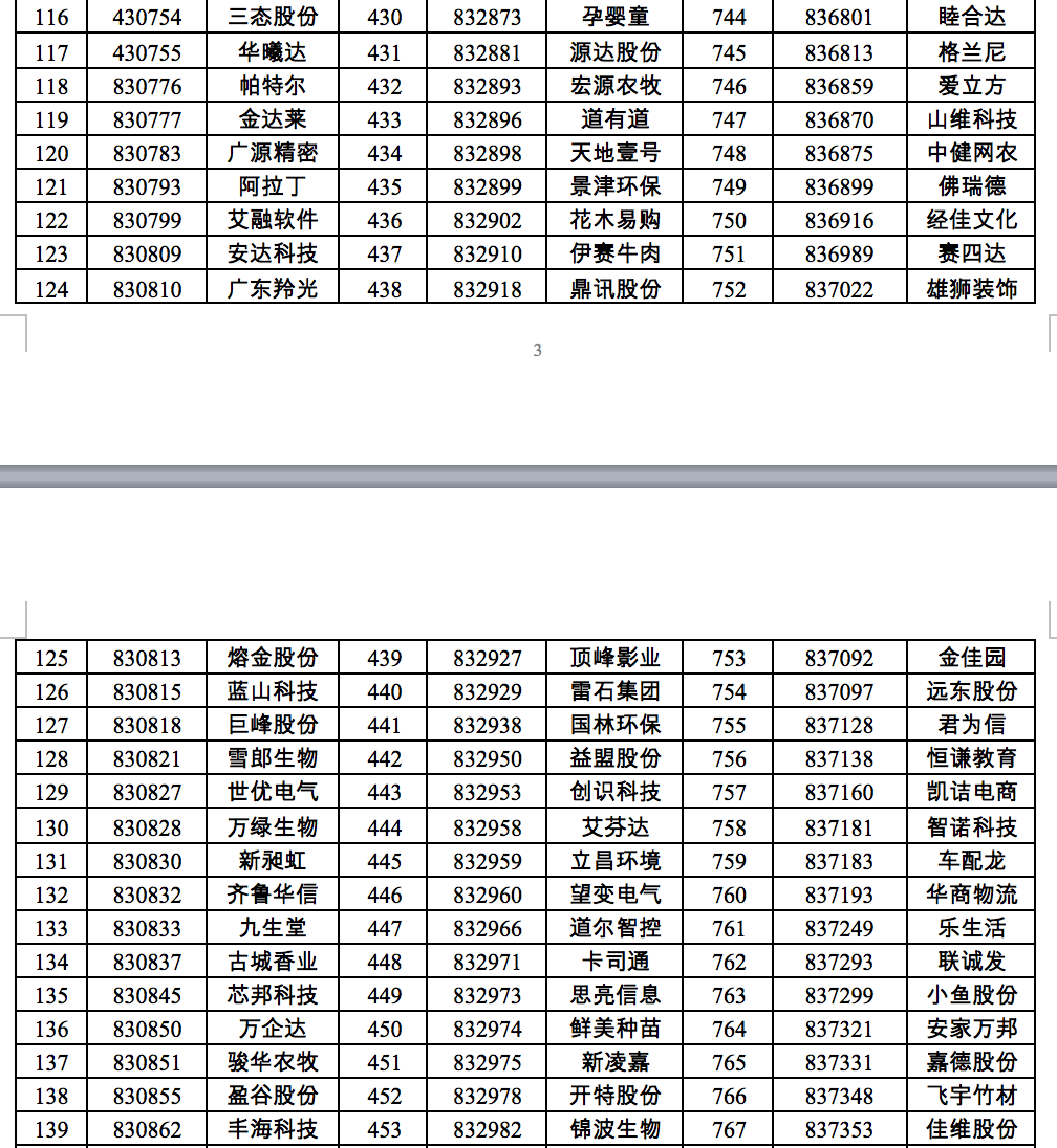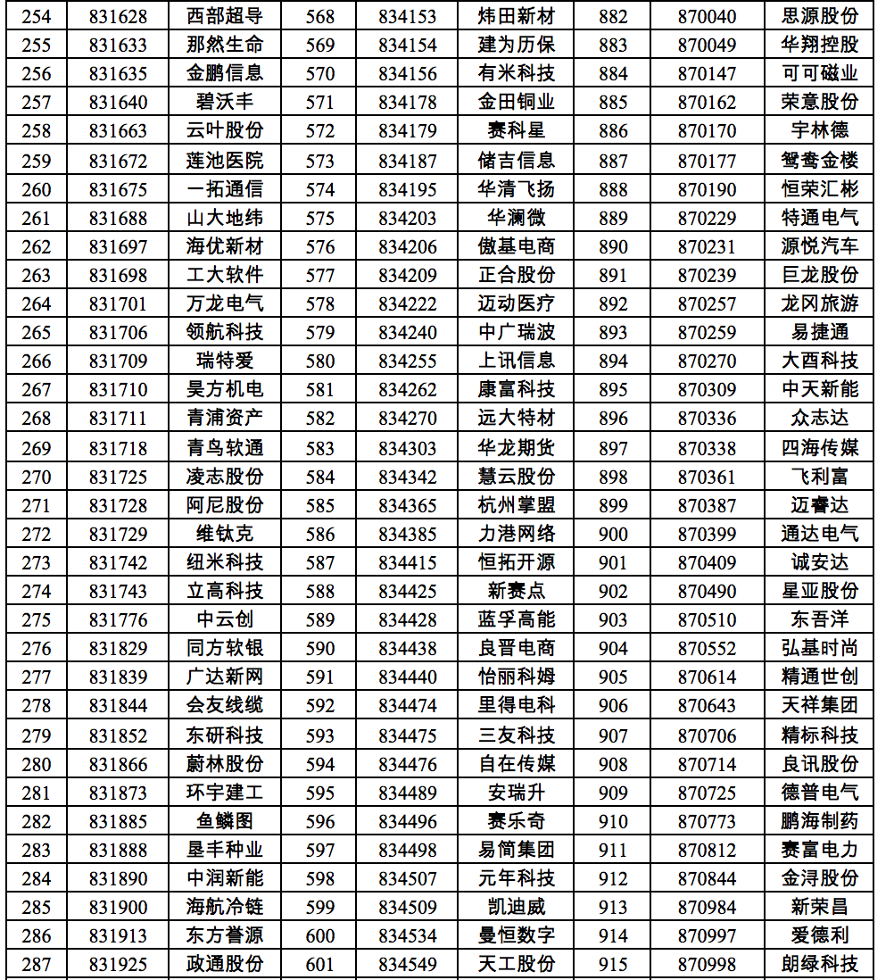 三、满足创新层标准的挂牌公司共计940家(详细名单见附件)。