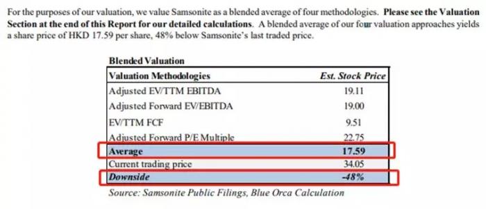 因此Blue Orca给予新秀丽股价17.59港元/股,相较于前一个交易日折价48%。