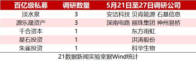 虽然本周调研热情有所下降,但是明星私募机构调研动作频频。例如,王亚伟的千合资本盯上了东方雨虹,淡水泉先后参与了安洁科技、贝肯能源、石基信息的调研会议。