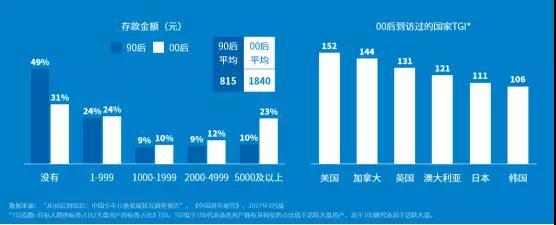 00后所生长的社会环境处于阶层流动性降低、物质⽣活优越之下。00后的存款约为90后的3倍,除了有更高的的消费力,还有更大的财务自主权;同时他们的家庭收入更高,很多人从小就拥有走出国门看世界的机会。