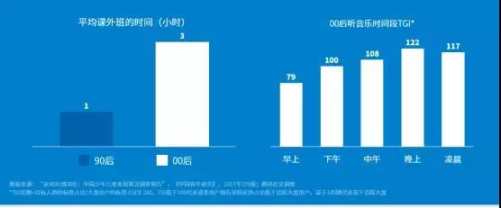 但这并不意味着00后玩物丧志,数据显示,00后的课业负担更重,参加课外班的时间达到90后的3倍,以至于娱乐事件被集中压缩在了晚上和凌晨。