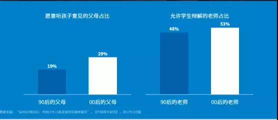 “独一代”的家长对独生子女教育毫无经验,不免手足无措,相比起来,“独二代”的健康成长不再是在黑暗中摸索,而是有了系统的教育方案。不仅如此,00后父母的教育水平普遍较高,这使他们拥有更加开放的心态,对于子女的养护,则宽容多过苛求。在更加平等的家庭关系中,00后拥有更平等的话语权,能够在长辈面前表达自己真实的想法。