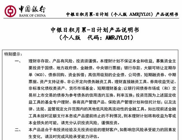 据产品说明书,“中银日积月累-日计划”为一款中低风险、高流动性银行理财产品。