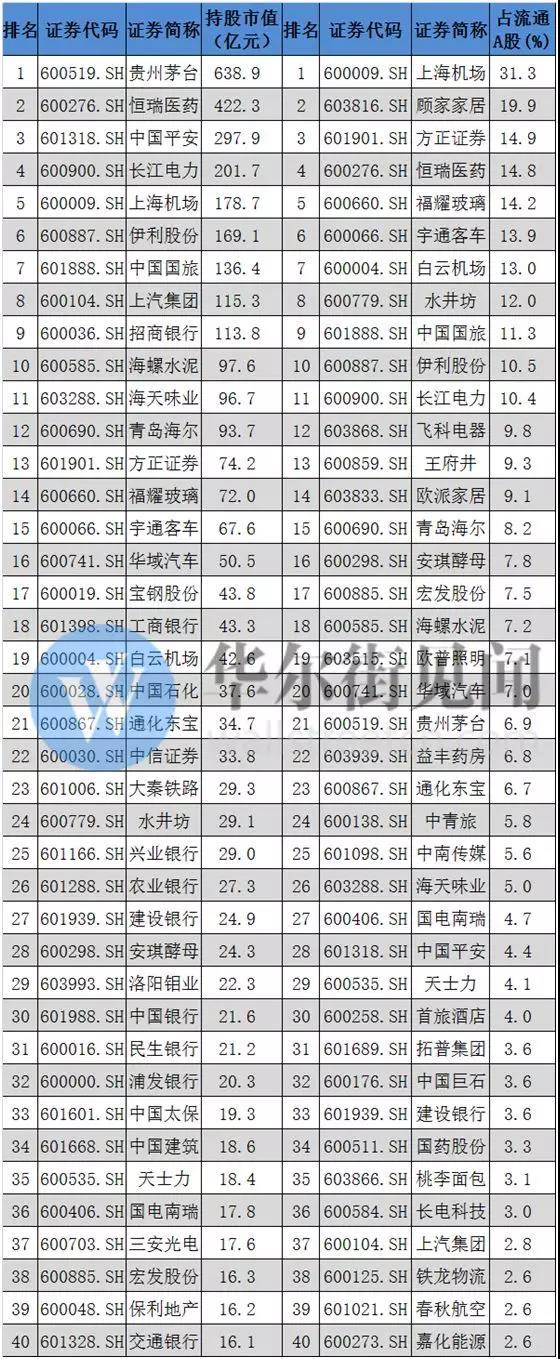 截至5月28日,沪股通外资持股总市值为4161亿元,其中排名前40的股票(总共777只)持股市值就达3452亿元,占比约为83%。