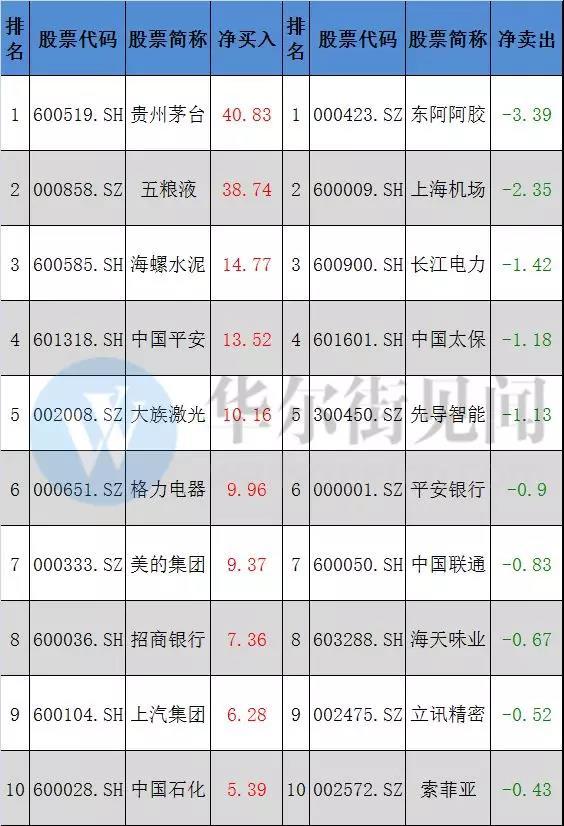 最近三个月,外资净买入和净卖出前十名的A股公司名单如下,单位为“亿元人民币”。