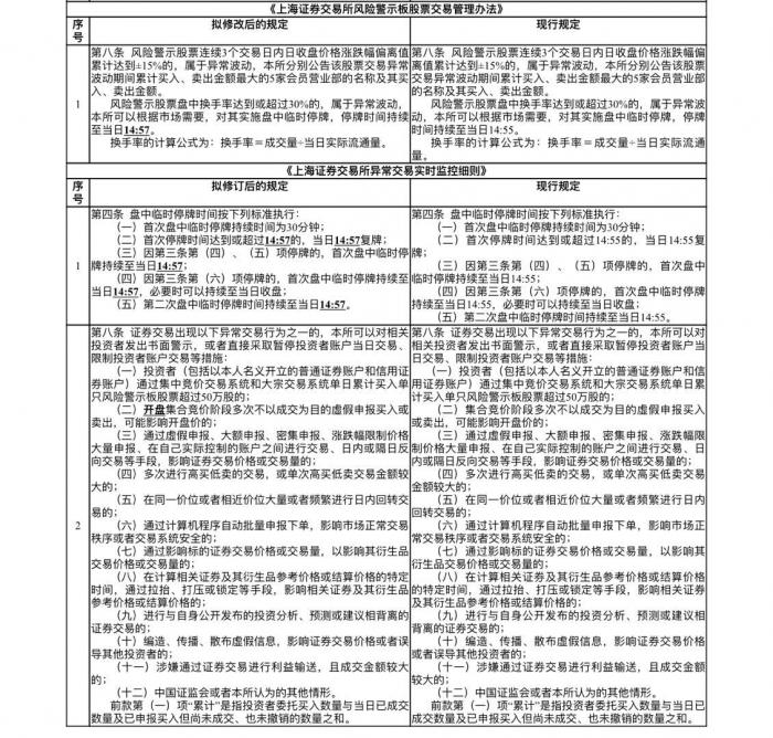 四是细化明确“集合竞价阶段”的适用范围,改为“开盘集合竞价阶段”。该部分内容涉及的修订条款为:《异常交易实时监控细则》第八条。