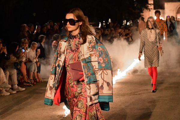 为了吸引更多的消费者,品牌们各显神通。Gucci的设计师Alessandro Michele带来了诡谲、神秘又带有风情和冲击力的表演,在阿尔勒的一座罗马墓地中,Gucci的时装秀在哥特式的气氛中展开。碎花裙、天鹅绒连衣裙、绣花披肩、黑皮大衣均有穿越历史之感。“在纽约、伦敦和佛罗伦萨之后,法国是Gucci最自然的登陆地。我想向我们国家的文化和历史致敬。”大秀前,Michele在向WWD发表的一份声明中称。