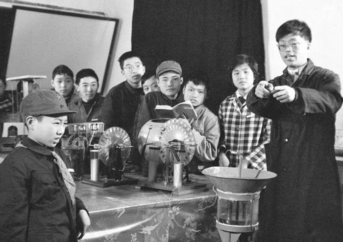 ▲1977年,中国科技大学少年班的学生在上物理实验课。(新华社发)