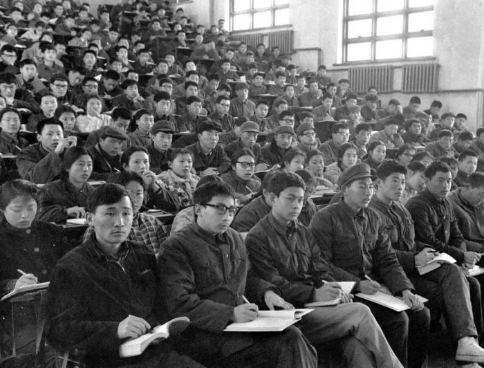 ▲1978年2月,恢复高考后的第一批大学生进入大学校门。这是清华大学1977级的学生在课堂上。(新华社发)