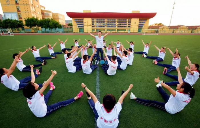 ▲2017年6月2日,河北省衡水市冀州中学教师带领高三学生开展趣味减压活动。(新华社记者 牟宇 摄)