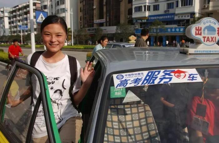 ▲2002年7月7日,桂林五中的考生范艾芸走出考场乘坐高考免费服务车回家。(新华社记者 陈天湖 摄)