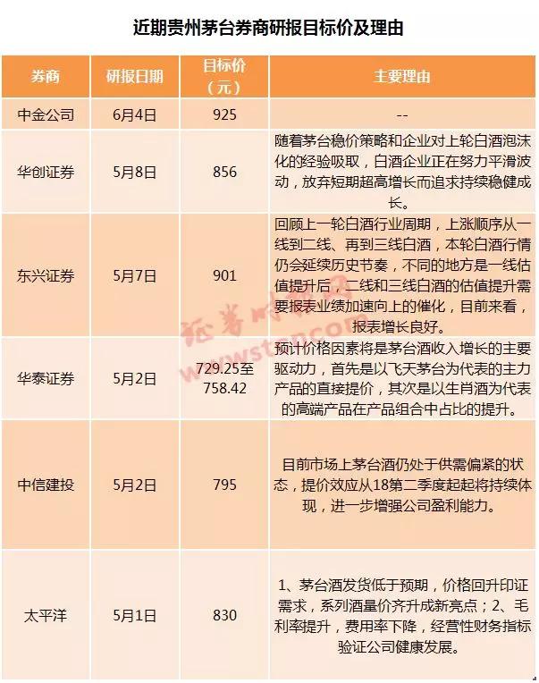 复盘今年以来沪股通前十大活跃股,贵州茅台无疑是沪股通平台上交易最为活跃的个股。而茅台一季报披露后,多家券商也随之上调茅台的目标价。其中,中金公司给出925元的目标价引人注目。
