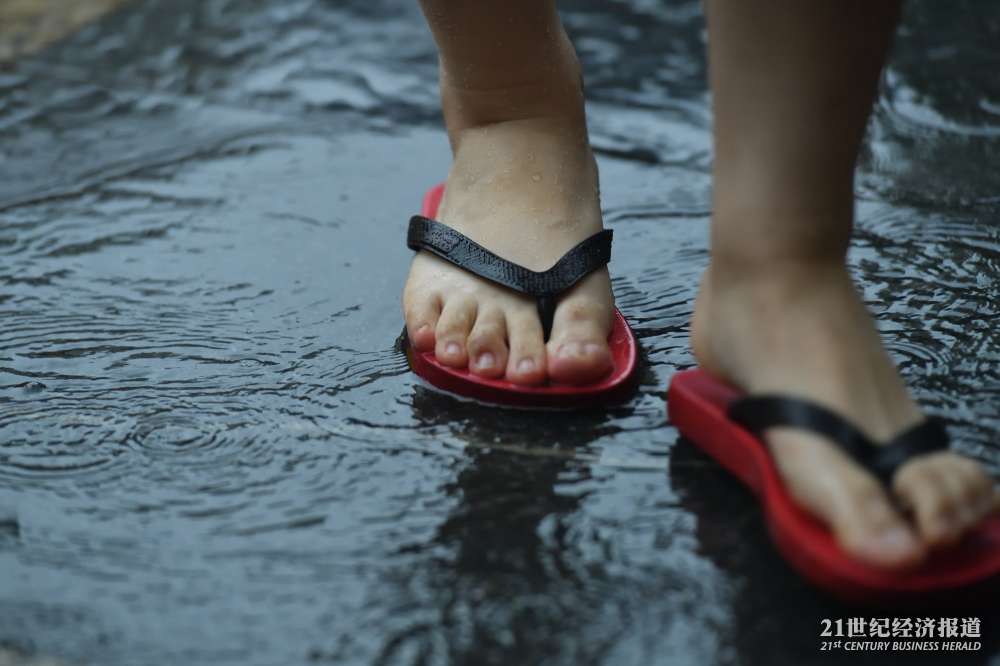 人字拖是应对“落雨大,水浸街”天气的好方式。