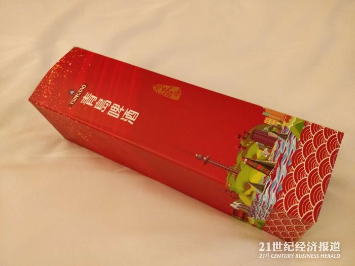 说道青岛就想到青岛啤酒,几乎是条件反射吧。这个盒子我就不拆了,真的不是一瓶清凉的啤酒,而是一个挺漂亮的保温杯。(记者们是来工作的,当然不会给酒啦。)
