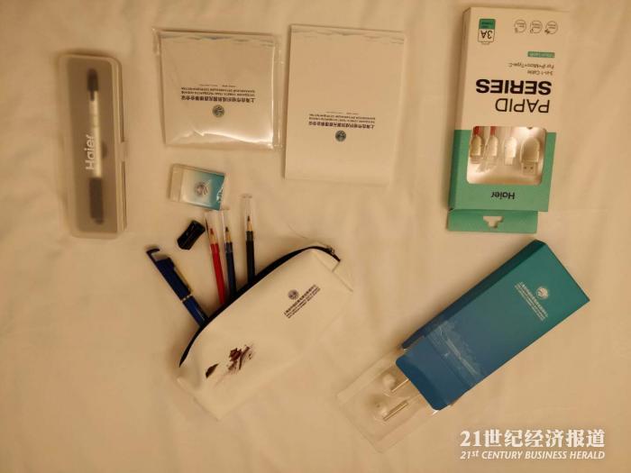 有种来青岛参加高考的错觉……但还是挺可爱的。耳机是非常体贴的设计,这可是记者听录音必备设备。各种数据线也很实用,每次在新闻中心都会看到有记者借数据线。
