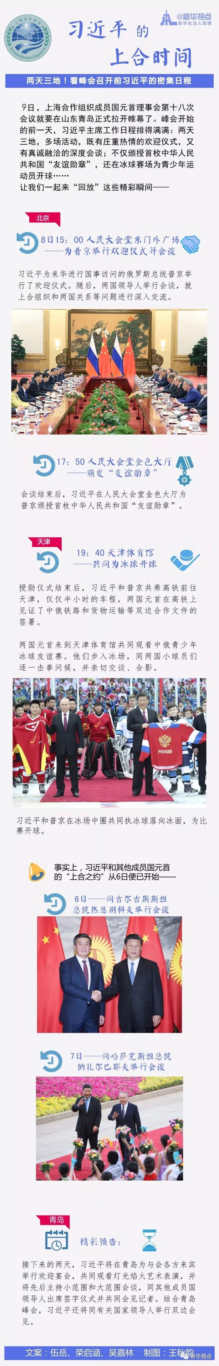 9日,上海合作组织成员国元首理事会第十八次会议就要在山东青岛正式拉开帷幕了。峰会开始的前一天,习近平主席工作日程排得满满:两天三地,多场活动,既有庄重热情的欢迎仪式,又有真诚融洽的深度会谈;不仅颁授首枚中华人民共和国“友谊勋章”,还在冰球赛场为青少年运动员开球……让我们一起来“回放”这些精彩瞬间。