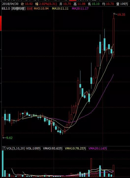 哔哩哔哩上市首日就破发,收报11.24美元,而后股价有所震荡,到5月7日收报为10美元。而后开启了股价拉升之路,一路飙涨最新交易日收涨16.83%,报收18.95美元,较一个月前暴涨89.5%。最新市值为52.77亿美元,折合人民币338亿元。