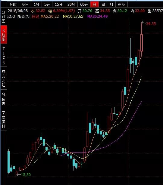 爱奇艺上市之初也是经历破发,到5月7日收报16.34美元,而后开启暴涨之路,最新收盘价为32.82美元,最近一个月(22个交易日)的股价升幅为100.86%。最新市值为232亿美元,折合人民币1487亿元。