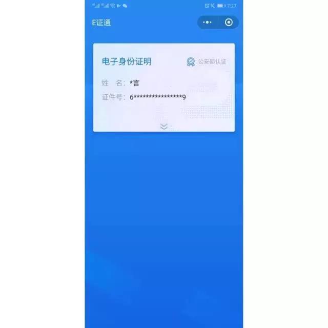 经过证件和人脸验证之后,一张电子身份证明就已经生成了,点击下拉即可显示所生成的二维码,该二维码用于在过关环节的机器识别。