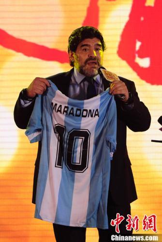 资料图:球王马拉多纳是10号球衣的代表。中新社发 侯宇 摄