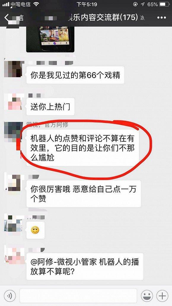 对于这种说法,斜阳难以接受。她认为,点赞数即使有水分,也绝不是达人的责任。机器人刷赞与刷评论早已是行业公开的秘密,至于到底谁在刷赞,掌握后台数据的微视一清二楚。假设点赞数确实有假,但对于达人们要求公开后台真实点赞与评论数据的诉求,微视方面截至目前也并未回应。