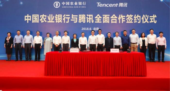 21世纪经济报道记者了解到,仅6月14日上午,腾讯公司就接连与中国农业银行、中国邮政储蓄银行两家国有大行签署全面合作协议。